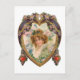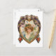 Uma bela jovem sorri do quadro de um coração dourado decorado com corações e flores. Personalize para Dia de os namorados, ou só para dizer que te amo.