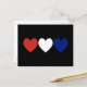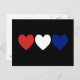 Cartão Postal Corações Vermelhos Branco e Azul
