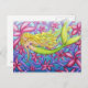 Bonito sereia chamada "Coral", nadando com flores de coral rosa em fundo.