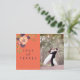 Cartões de agradecimentos de casamento russo, elegante, marinho, azul e coral moderno, com flores cor-de-água rosa pincelada e foto personalizada.