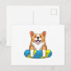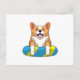 Cartão Postal Corgi Galês Nadando com Tábua de Natação