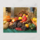 Cornucopia, corno de abundância, frutas e vegetais, incluindo abóboras, uvas, batatas, laranjas, pimentos, maçãs e limões.