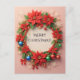 Grinalda de Natal brilhante e alegre adornada com poinsétia vibrante, ornamentos cintilantes, flocos de neve e fitas em um fundo quente e macio simbolizando alegria e celebrações de Natal.