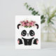 Cartão postal de panda bonito. Urso panda preto e branco de Kawaii com coroa floral.