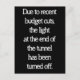 Devido a cortes orçamentais recentes, a luz no final do túnel foi desligada.