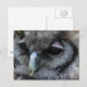 Cartão-postal com uma macro foto de uma coruja de cinzas bonitinha com pálpebras cor-de-rosa.