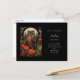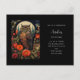Cartaz de aniversário com uma coruja legal com um olhar piercing. Uma lua de cheio nas costas com um jardim de flores vermelhas.