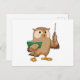Cartão Postal Coruja como Professora com Livro e Ponteiro