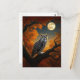 Uma coruja excelente corada em uma árvore no outono sob a luz de uma lua de cheio.