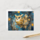 Cartão Postal Coruja Mística num Castelo de Árvore à Noite