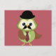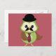 Cartão Postal Coruja retrô com chapéu, gravata e bigode