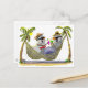 Desenho animado de um casal de bonecos de neve a desfrutar de um dia na praia no verão!