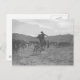 Cartão Postal Cowboy batendo um bezerro para marcar primavera.