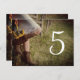 O casual, porém clássico, Cowgirl e Sunflower Country Western Wedding Table Numbers podem ser personalizados para criar um cartão diferente para cada mesa na sua recepção de casamento rural ou tema de rancho, festa de noivado ou almoço de chá de panela. Estes cartões de números de mesa, personalizados, informais e elegantes, possuem uma fotografia em estilo de fazenda de uma noiva que veste um vestido de noiva branco e botas de cowboy castanho carregando um buquê de girassóis amarelos inclinados contra uma cerca de arame farpado de madeira com grama verde.