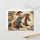Cartão Postal Cowgirl em um Cavalo Pinto
