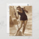 Fotografia vintage divertida de uma mulher de biquíni do passado.
