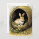 A imagem mostra uma cena encantadora de um coelho aninhado confortavelmente em uma toca acolhedora. O coelho, com pelo macio e ouvidos alertas, está sentado em um leito de palha e deixa dentro da toca. A própria toca é rodeada por erva verde e plantas pequenas, criando um ambiente natural e sereno. A iluminação na imagem é suave, destacando o coelho e dando à cena uma sensação quente e convidativa. A atmosfera geral é pacífica e idílica, capturando um momento de tranquilidade na natureza.