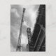 Uma grua de construção e seus contrapesos de várias toneladas com faixas de nuvens atrás delas. Filme preto e branco mostra a geometria dentro das travas do sistema de guindaste e roldana. Para dar à grua uma perspectiva única, seu braço está alinhado com seu fazer base, uma escada até o céu do canteiro de obras. Fotografia a preto e branco de 35 mm. Copyright ©Claire E. Skinner. Todos os direitos reservados.