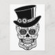 O crânio de açúcar cavalheiro está vestido com seu chapéu de cima pronto para o Dia de los Muertos.