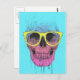 Cartão Postal crânio de pop art com óculos