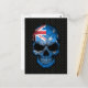 Esta design única mostra a bandeira da Austrália pintada em um crânio agressivo. As cores australianas cobrir o crânio metálico com grandes fendas serpenteando através do osso. O crânio se senta sobre uma malha de aço que dá ao design um aspecto industrial. Este padrão negro é uma maneira única de mostrar seu patriotismo.