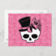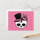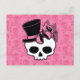 Cartão Postal Crânio feminino com chapéu e Arco rosa