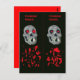 Crânios de cinza com olhos vermelhos brilhantes e manchas de sangue em fundo preto com as palavras "Horror dentro". Os favoritos perfeitos para quem ama ler livros de mistério e de horror! Simplesmente corte a linha vermelha e você terá dois favoritos.