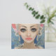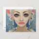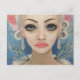 Esta é a minha obra de arte original de uma fada encarada de mania, ela pintada contra um fundo azul pálido, ela tem o cabelo em um pombo glamouroso, ela tem asas, rosas e pérolas pequenas.