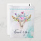 Cartão postal de agradecimento com uma mensagem personalizada no verso. Projetado com um fundo de aquarela turquesa e pastel. Uma caveira de animal boho chic com um buquê floral sobre a cabeça e pequenas borboletas voando ao redor. Uma borda decorativa fofa com pequenas formas de lágrima em azul claro.