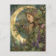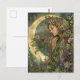Celebrar a energia encantadora de Ostara com esse cartão-postal estonteante, com uma lua crescente cativante como pano de fundo. Uma mulher radiante enfeitiçada em um vibrante traje de primavera se posiciona em meio a uma enxurrada e flores florescentes, incorporando o espírito de renovação e crescimento. Perfeito por enviar desejos calorosos e abraçar a beleza da estação.