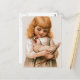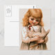Ilustração Vintage mostrando uma garotinha abraçando uma galinha.