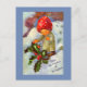 Cartão Postal Criança de Cogumelo com Neve e Holly