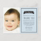Um design moderno para obrigado de seus convidados por todo o tipo de presentes e apoio deles. Você pode assinar a mensagem do seu pequeno para lhe dar um toque extra fofo. O modelo pode ser mudado para cor-de-rosa para se adequar a uma garota também com sua própria foto e nomes adicionados a ela.