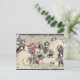 Crianças e pais brincando na neve. Eles estão jogando bolas de neve e fazeres gigantes rolando bolas de neve. Crianças e mães vestindo fantasias orientais tradicionais.