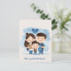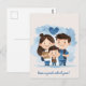 Um cartão postal fofo com predominância azul apresentando três crianças de escola fofas e um texto personalizável com o texto padrão "tenha um ótimo ano letivo!".