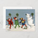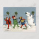 Cartão Postal Crianças felizes caminhando com boneco de neve, fe