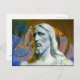 Cristo com a peça do trator Halo Postcard ... Minha foto de 2004 de uma estátua anônima de cimento de Cristo em um cemitério próximo com uma parte circular de trator como halo. A minha arte computacional de 2005.