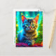 Bonito gatinho sentado em frente à abertura das árvores de Natal personalizado cartão postal de Natal.