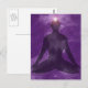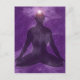 A Crown Chakra está localizada no topo da cabeça e é um estado de energia universal e consciência do mais alto. Roxo e branco estão ambos associados à Crown Chakra. O chakra de Sahasrara mostrou aqui com a silhueta meditante e a Flor da Vida. Painel 7 0f 7