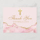 Elegante ágata rosa e dourada decora este lindo cartão de agradecimento personalizado para confirmação ou batismo para a celebração da cerimônia cristã de uma menina. Personalize estes cartões com um nome e sua mensagem sob a bela cruz religiosa.
