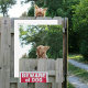 Cuidado com um cão giro como este Yorkshire Terrier. Ironicamente este pequeno Yorkie é menor que o sinal "Cuidado com o Cachorro". Os Pássaros Cachorros vão adorar este cartão postal. Esta imagem é uma fotografia original de um animal de estimação feita por JLW_PHOTOGRAPHY