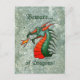 A pintura de Linda Baysinger de um dragão verde, europeu, com texto que diz, "Cuidado com os dragões" em fundo simulado de pedra. Imagem © Linda Baysinger Peck Todos os Direitos Reservados