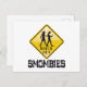 Um design legal e engraçado com duas pessoas caminhando assistindo em seus smartphones como zombies e a citação "Cuidado com os Smombies".