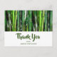 Cartão de agradecimento com um tema asiático. Uma fotografia de uma fileira de caules de bambu verdes e verde-amarelados.