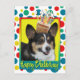 Celebrar um aniversário com este Cartão de Saudação Corgi Cachorro. Com um cupcake balanceado na cabeça, este design pode trazer um sorriso e risadinhas! BTW, Este design tem várias versões, com diferentes cores de fundo. Há também um convite para uma versão do Partido.