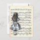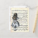 Um estêncil de quatro camadas de Alice numa folha de música.