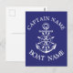 Cartão Postal Custom boat captain name navy Postcard