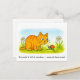 Cartão Postal Cute Cartoon Cat Watching Ladybug in Meadow