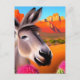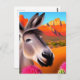 Cartão Postal Cute Desert Donkey com cacto em flor