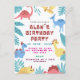 This cute dinosaur birthday invitation features friendly dinos, tropical leaves, and playful colors — the perfect combo for a fun prehistoric celebration.
